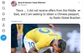 体坛周报全媒体原创 当时时间9日,据沙特媒体报道,之前一直想要得到苏宁外援特谢拉的阿尔希拉尔已经放...