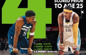 开云体育全站app下载地址-爱德华兹25岁前总得分超越安东尼 上升至历史第四&仅次于詹杜东